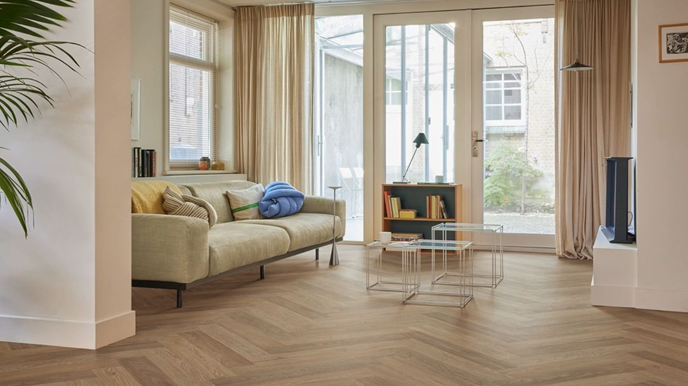 Elegant herringbone‑pattern SPC flooring that adds timeless sophistication to your interiors. A premium finish that elevates any space
